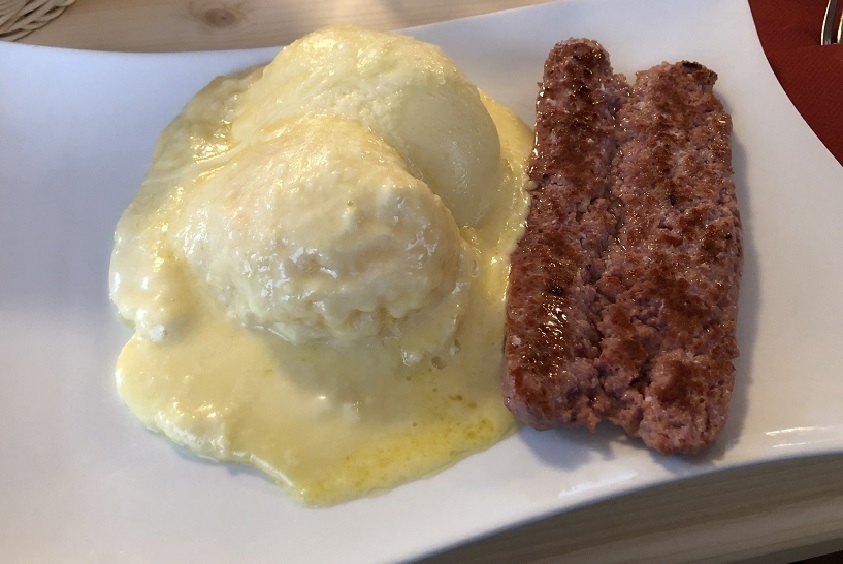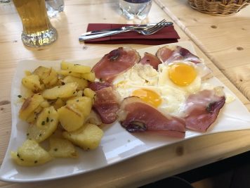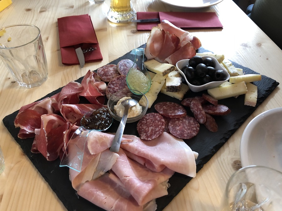 Proprio all’inizio della valle, a quota 1860 metri, si trova poi il Rifugio Micheluzzi  L’interno del rifugio è completamente ristrutturato e molto accogliente. I canederli al formaggio, l’uovo con speck e patate, nonché la polenta con salsiccia e formaggio fuso che abbiamo provato erano tutti davvero ottimi.