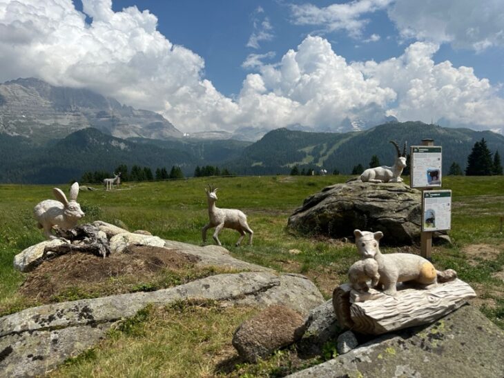 Tra le novità dell’estate 2025 in Trentino ecco il Junior Park Madonna di Campiglio! Questo parco tematico immerso nella natura sorge nel suggestivo contesto di Malga Zeledria, ai piedi delle Dolomiti di Brenta. Qui si snoda un percorso educativo costruito attorno a 18 sculture in legno a grandezza naturale, realizzate dalla scuola del legno “Le Busier” di Praso e raffiguranti la fauna alpina: orso, lupo, aquila reale, marmotta e tanti altri.