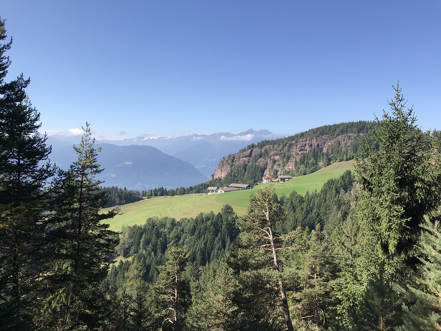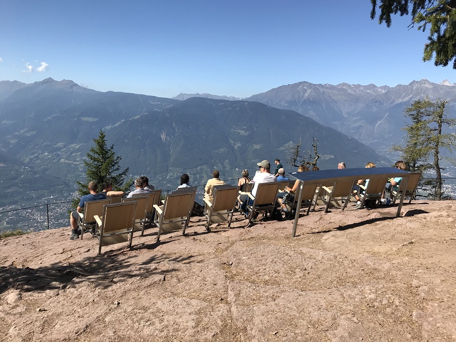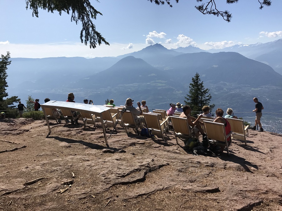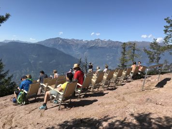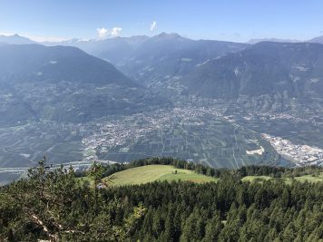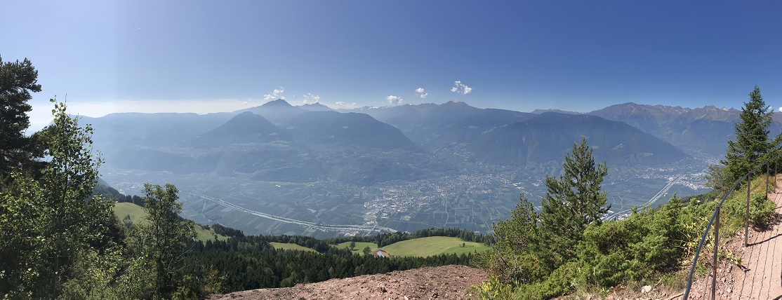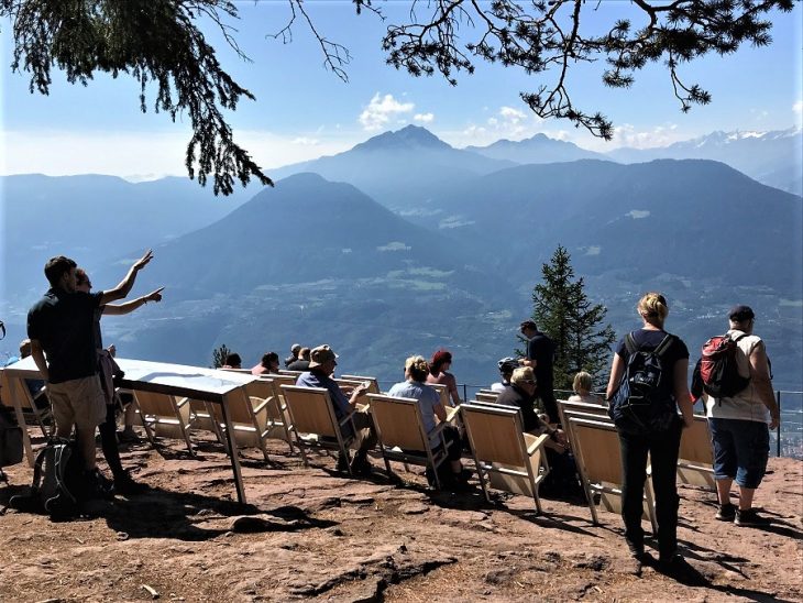 Da qui potrete osservare e ammirare il Lagorai Trentino, la Mendola, il Gruppo del Brenta, le Alpi Venoste, il Gruppo dell’Ortles, …oltre ai bellissimi disegni geometrici dei campi sottostanti di infinite sfumature di verde.