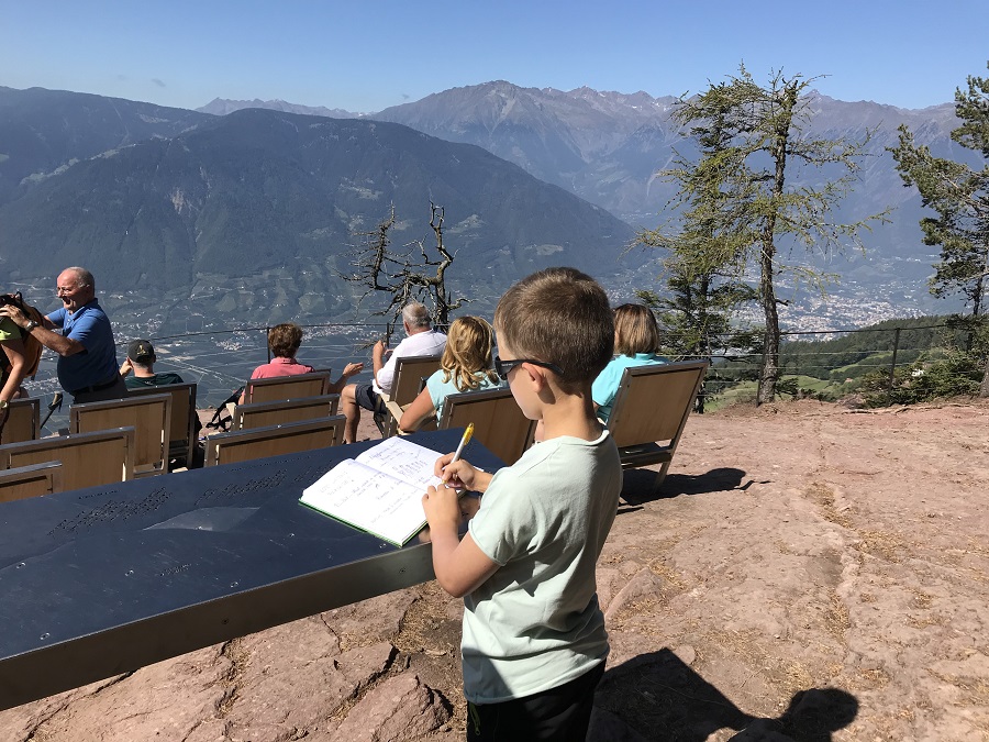 Abbiamo lasciato il nostro nome con la data della nostra visita sul quadernetto posizionato in una casetta di metallo e siamo rientrati per la stessa strada dell’andata. Lungo il percorso troverete diverse cartelli con le indicazioni per raggiungere alcune malghe e allungare per chi vuole un po’ il tragitto. Noi abbiamo seguito le indicazioni per KNOTTKINO segnavia n° 14 (anche se alla partenza il numero sul cartello è cancellato) e il cartello più piccolo con KNOTTKINO n. 3 (ci sono diversi percorsi per raggiungerlo).