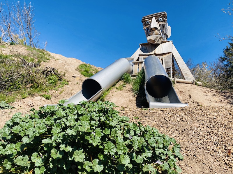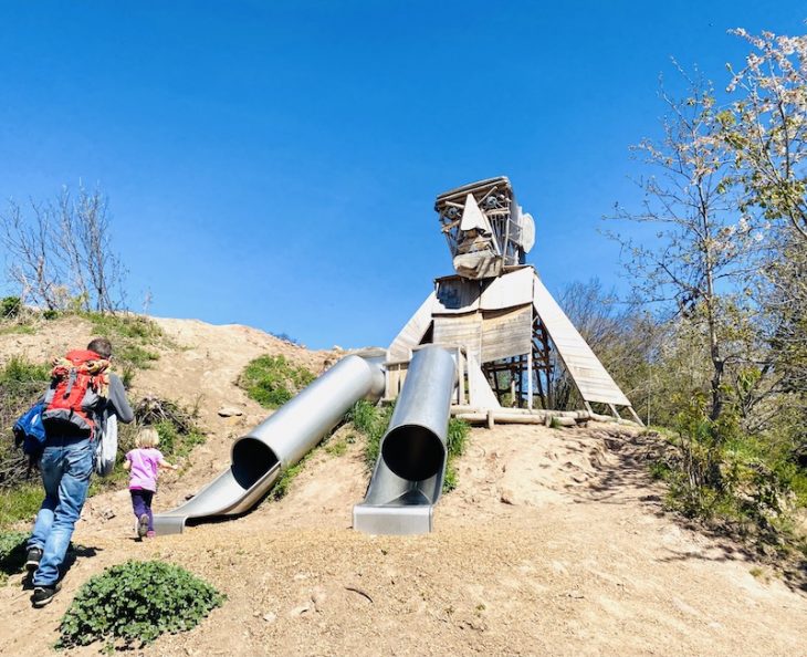 Scendete ancora e dopo una breve salita (non prendete la deviazione per Salonetto) ed ecco l’uomo gigante, su cui arrampicarsi fin dentro alla sua testa, oppure da cui scendere nei divertenti scivoli posizionati al posto delle gambe. L’effetto sorpresa per i bimbi qui sarà assicurato e dovrete impegnarvi parecchio per ripartire lungo il percorso.