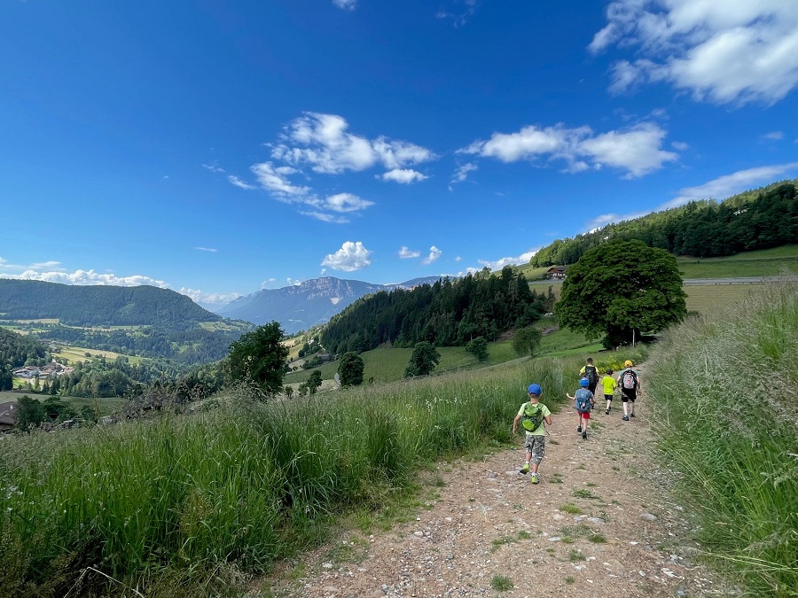 Da qui avete due possibilità: scendere ancora un quarto d’ora fino all’arrivo della funivia Vilpiano- Meltina (ottima secondo me anche l’opzione di salire da Vilipiano in funivia e poi intraprendere il percorso nel senso contrario, affrontando prima la salita e poi al ritorno la discesa) e proseguire risalendo fino a Salonetto lungo la strada asfaltata, oppure tornare subito indietro di qualche metro e seguire le indicazioni fino a Salonetto (5 minuti, pianeggiante).