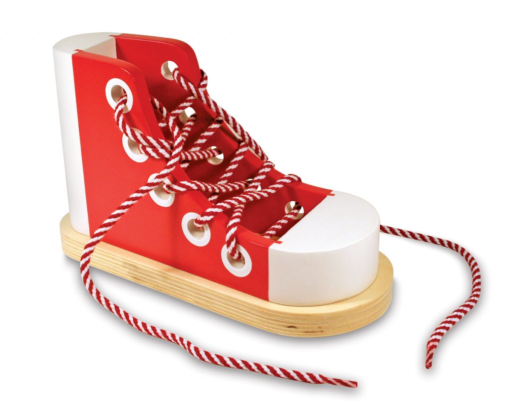 - E cosa dire poi di lacci e fiocchetti? Leggevo proprio in questi giorni che c’è un innalzamento dell’età in cui i bambini imparano ad allacciarsi le scarpe. Colpa dell velcro… e forse della pigrizia dei genitori (nel mio caso è sicuramente quello). Ecco che allora ci viene in soccorso la Scarpa da allacciare di Melissa & Doug, euro 10,50: imparare a fare fiocchi non sarà più un’imposizione ma un divertente gioco!