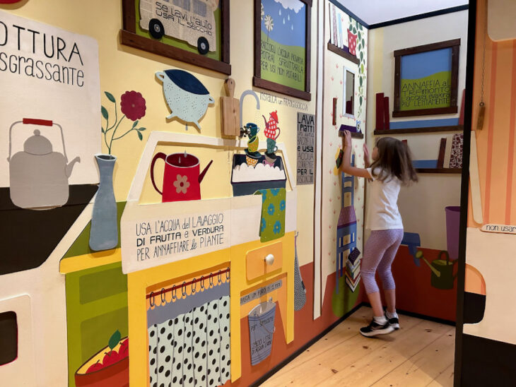 Il posto preferito dei bambini più piccoli è senza dubbio la “casa sostenibile“: una coloratissima riproduzione degli ambienti quotidiani piena di consigli su come risparmiare acqua in maniera intelligente. Bella anche la libreria di storie e racconti d’acqua.