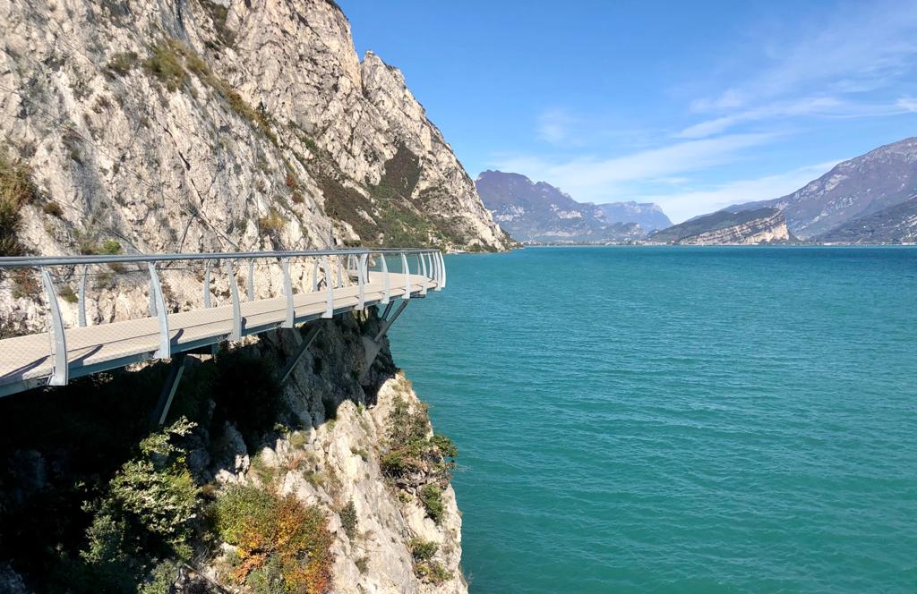 Una passeggiata adatta a tutte le stagioni, meglio ancora se scegliendo una giornata ed un orario non di punta, è quella lungo la ciclo-pedonabile che parte da Limone e arriva fino al confine con Riva del Garda. Inaugurata nel 2018, presto sarà collegata con le ciclabili dell’Alto Garda, e permetterà così di arrivare fino a Limone in bici o a piedi senza preoccuparsi del traffico stradale.