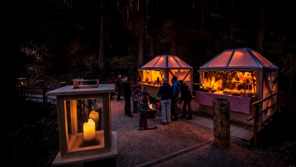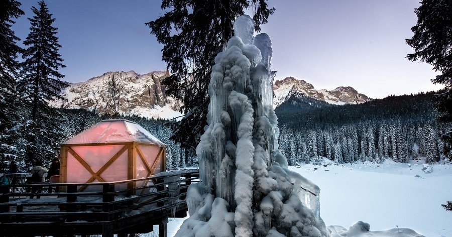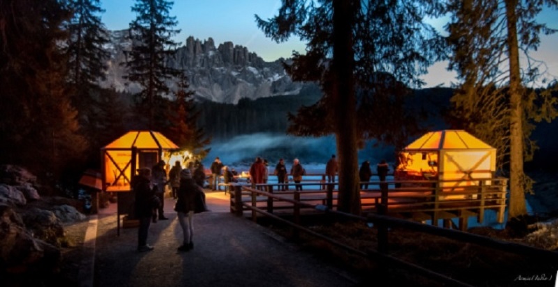 A partire dal 26 novembre, e fino al 18 dicembre 2022 le sue caratteristiche casette in legno si illuminano alla sera, come grandi lanterne. Potrete trovare qui prodotti tipici e artigianali in vendita, oltre a particolari sculture di ghiaccio che rievocano le leggende dolomitiche, un presepe a grandezza d’uomo e varie stufe per riscaldarsi vicino agli stand enogastronomici o lungo il percorso intorno al lago.