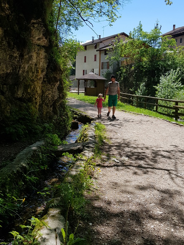 Abbiamo passeggiato per una ventina di minuti accanto al fiumiciattolo, passando su ponticelli e ammirando la peculiarità del luogo. Molto carino il mulino non più in funzione situato su una riva. Per chi lo desidera ci sono anche vari tavolini e panchine per riposare al fresco, in estate, o per un pic-nic.
