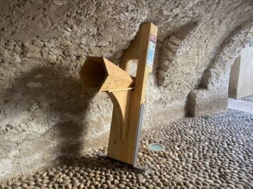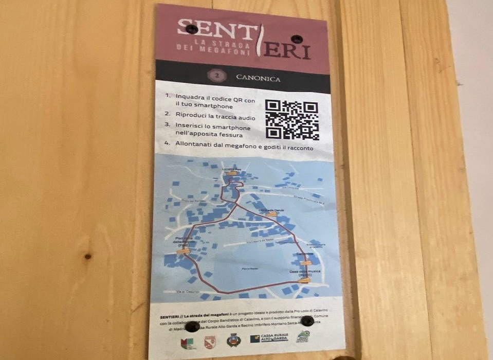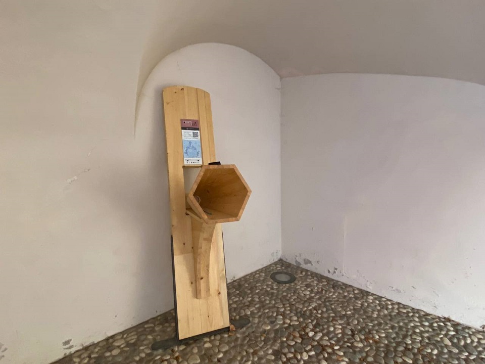 Il percorso è composto da cinque tappe. In ognuna di esse i visitatori potranno ascoltare una narrazione audio. Basterà inquadrare il QR code con il proprio cellulare per far partire la registrazione. Non solo: l’originalità di questo progetto sta anche nella modalità di diffusione di queste tracce, diffusione che, una volta posizionato il proprio smartphone nell’apposita fessura predisposta, avviene attraverso delle grandi casse acustiche in legno, nella forma di grandi megafoni.