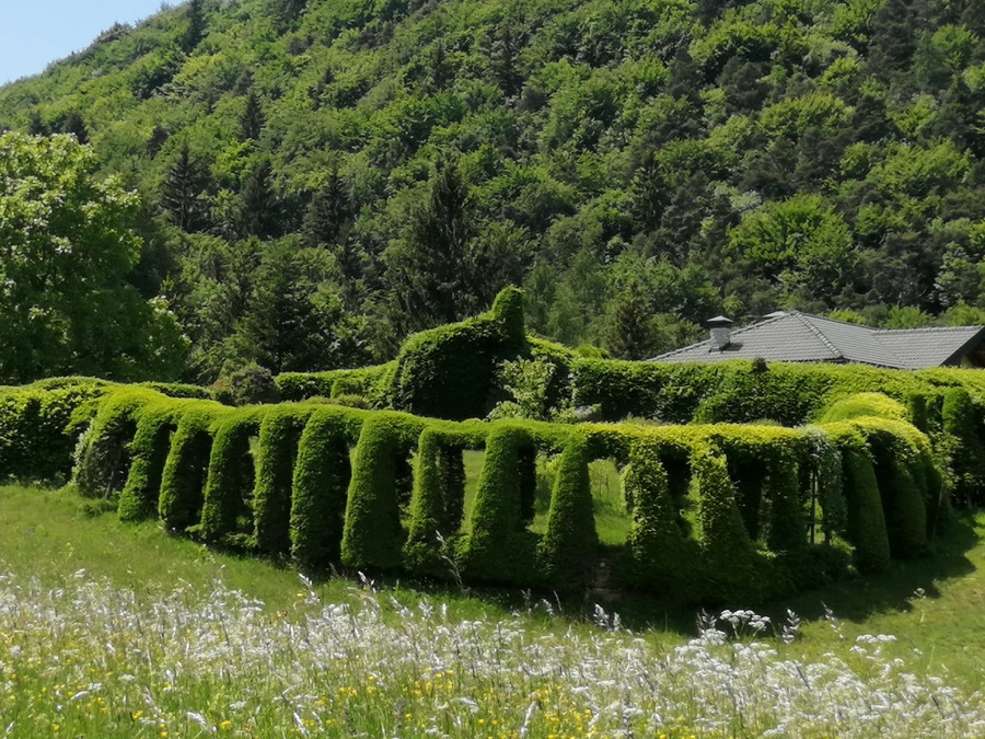 Un labirinto avvolto in una magica atmosfera, raggiungibile con diverse passeggiate nella natura. Il labirinto è costituito da alberi di abete e faggio, intrecciati tra loro e potati secondo i dettami dell’arte topiaria, in modo da assumere queste forme particolari. Trovate maggiori informazioni in Il Labirinto del Roccolo del Sauch.