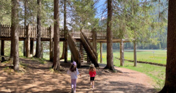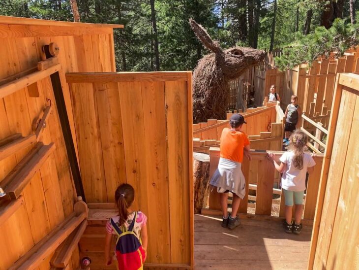 Un singolare labirinto di tronchi si trova all’estremità nord del Sentiero Avventura sul Piz de Plaies. Qui i bambini potranno cercare la via d’uscita camminando nelle stradine tra i tronchi, oppure saltare di tronco in tronco. Il divertimento è assicurato! Attorno è possibile fermarsi a riposare o fare un picnic con vista! Ne abbiamo parlato in Piz de Plaies: divertimento family.