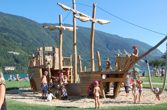 Molto apprezzato dalle famiglie anche il bellissimo lago di Molveno. Questo lago di origine glaciale ha acque sempre piuttosto fresche anche in estate, però la spiaggia di Molveno è un vero paradiso: dal super parco giochi con un enorme galeone su cui arrampicare, alla piscina all’aperto direttamente accessibile dalla spiaggia: Acquapark Molveno. La spiaggia è libera, di sassolini, con piazzole erbose e zone d’ombra. Presenti bar e ristoranti. Numerosi i parcheggi. Il centro di Molveno si raggiunge anche a piedi. Bella la passeggiata lungo il rio Massò.