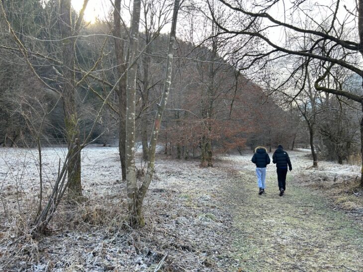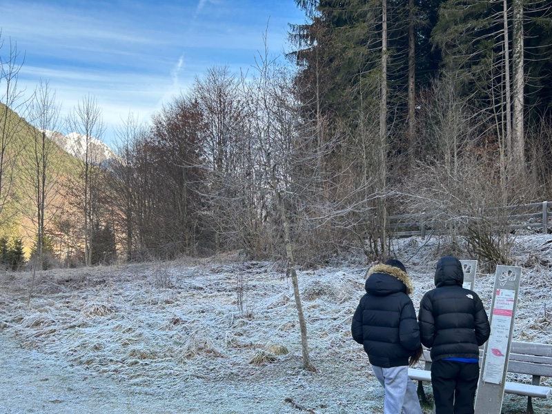 Non aspettatevi di incontrare molte persone, anzi facilmente sarete soli a godervi lo spettacolo della natura ed il silenzio. Come in un regno di ghiaccio, i cristalli ricoprono ogni cosa, come fragili fiori di vetro. Superate le passerelle si arriva ad una piccola radura completamente in ombra: soffermatevi ancora ad osservare i cristalli di ghiaccio sulle foglie: una vera piccola meraviglia che, osservata da vicino, lascerà a bocca aperta i bambini e non solo.
