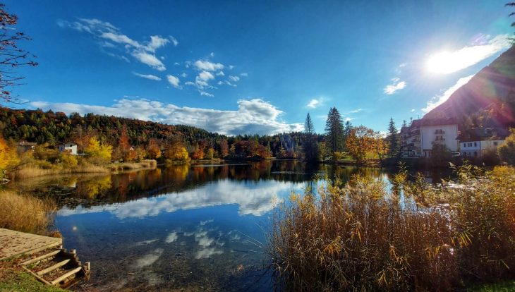 Il periodo migliore per visitarlo, oltre all’estate, è sicuramente l’autunno, quando i mille colori del foliage regalano una vista da cartolina. Non a caso il Lago di Cei è uno dei laghi più fotografati del Trentino nel periodo che va da fine ottobre a fine novembre. Guardate qui sotto che meraviglia, nulla da invidiare ai paesaggi canadesi o dell’America del Nord.