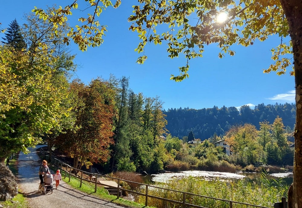 La passeggiata è gradevole e pianeggiante e si snoda sulle sponde del laghetto, tra radure e boschetti, offrendo riflessi dorati particolarmente belli nella stagione autunnale. I bambini si divertiranno sicuramente a giocare con le tante foglie cadute a terra!