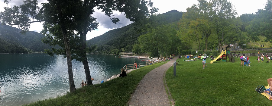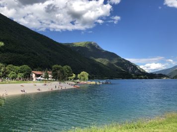 - Spiaggia di Besta a Molina di Ledro: è la più grande e più esposta al sole. Qui potrete decidere se rilassarvi sul prato, magari all’ombra di un bell’albero, oppure sui sassolini, più vicino alla riva. Perfetta per un bagno anche coi bambini perché il fondale scende dolcemente. Troverete un minimarket a pochi passi dalla spiaggia e diversi bar/ristorante. Gli sportivi avranno da sbizzarrirsi con il noleggio sulla spiaggia di kayak e sup, e potranno anche approfittare della presenza di istruttori per prendere confidenza con questi sport o migliorare il proprio stile. Presenti anche campi da beach volley e tennis. I più piccoli, nel frattempo, potranno divertirsi nel parco giochi che si affaccia sul lago. Presso il Noleggio Tarolli (che si trova poco più avanti, a fianco del Museo delle Palafitte) potrete noleggiare anche i pedalò.