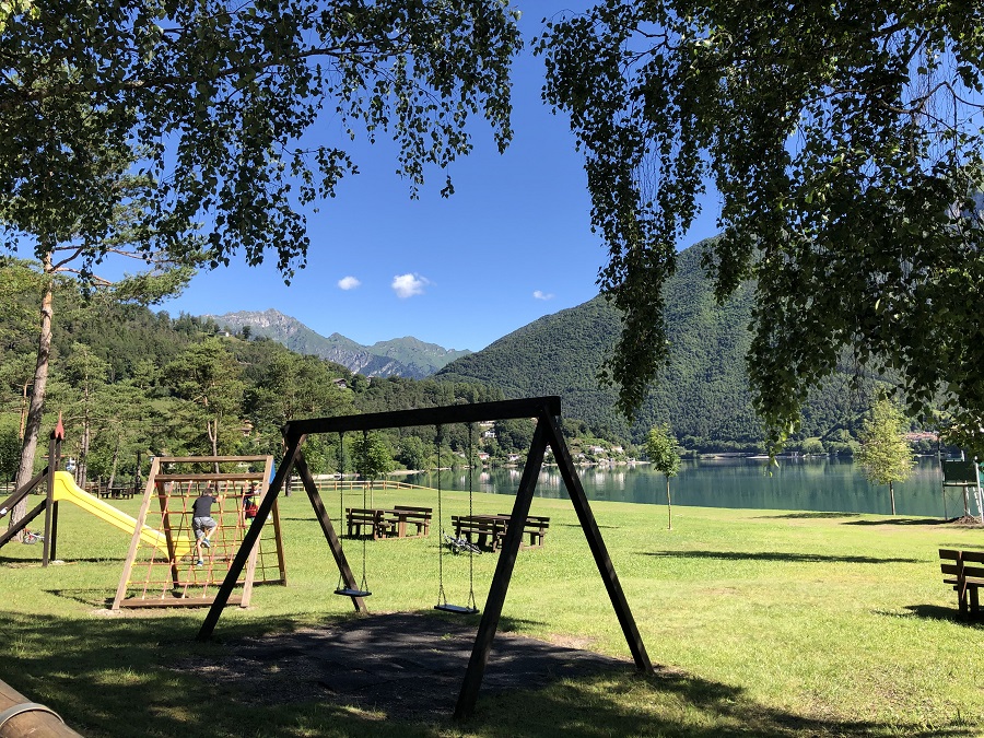 - Spiaggia di Mezzolago, sulla sponda nord del lago, si caratterizza per la zona verde con giochi e tavoli da pic nic. Questa spiaggia, rispetto alle altre, è decisamente più piccolina, ma proprio per questo è anche la meno caotica. Anche qui c’è la possibilità di noleggiare pedalò e barchette a remi.