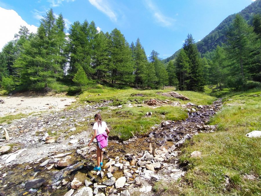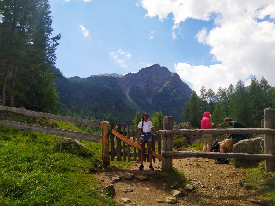 Per fare un bel giretto, con calma e allietato da qualche sosta, servono un paio di ore. Il sentiero è prevalentemente pianeggiante, con qualche tratto in salita nella seconda parte, ma comunque facile e fattibile da tutti senza particolari problemi. Il ritorno al parcheggio può essere fatto in navetta o anche a piedi in poco più di un’ulteriore oretta di cammino, seguendo o la strada o il sentiero che costeggia il torrente, magari fermandosi per un picnic in una delle aree attrezzate con tavoli e fontane che si trovano lungo la strada (ricordiamo che la strada è chiusa al traffico dalle ore 9.45 alle ore 17, quindi comunque molto tranquilla).