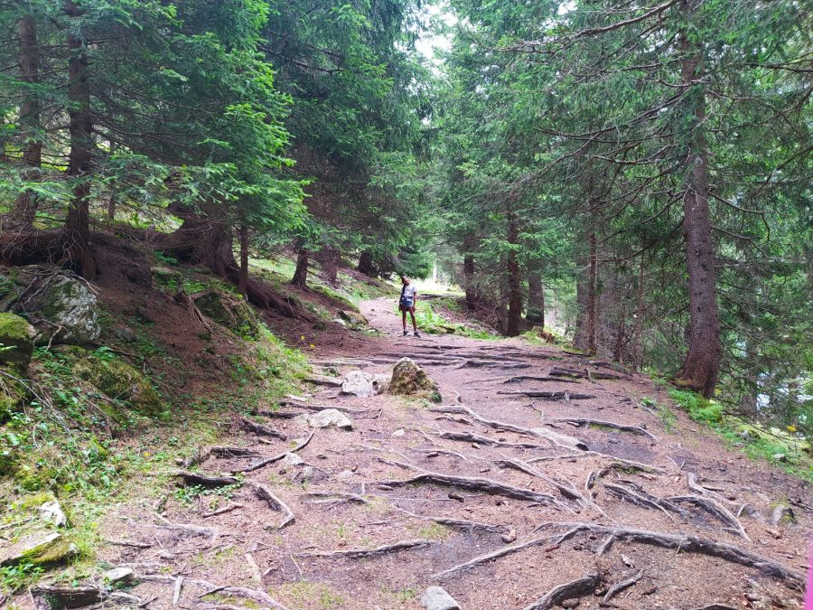 Da qui, attraversati un paio di ponticelli in legno, si sale ancora un po’ di quota su un suggestivo sentiero nel bosco che ad un certo punto si apre su un punto panoramico, dal quale si può godere dei migliori scorci sul lago e sulle montagne che lo circondano. Noi siamo rimasti abbagliati dal colore turchese dell’acqua e dai numerosi corsi d’acqua che si vedono scorrere a valle tra gli alberi.