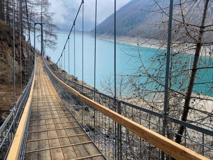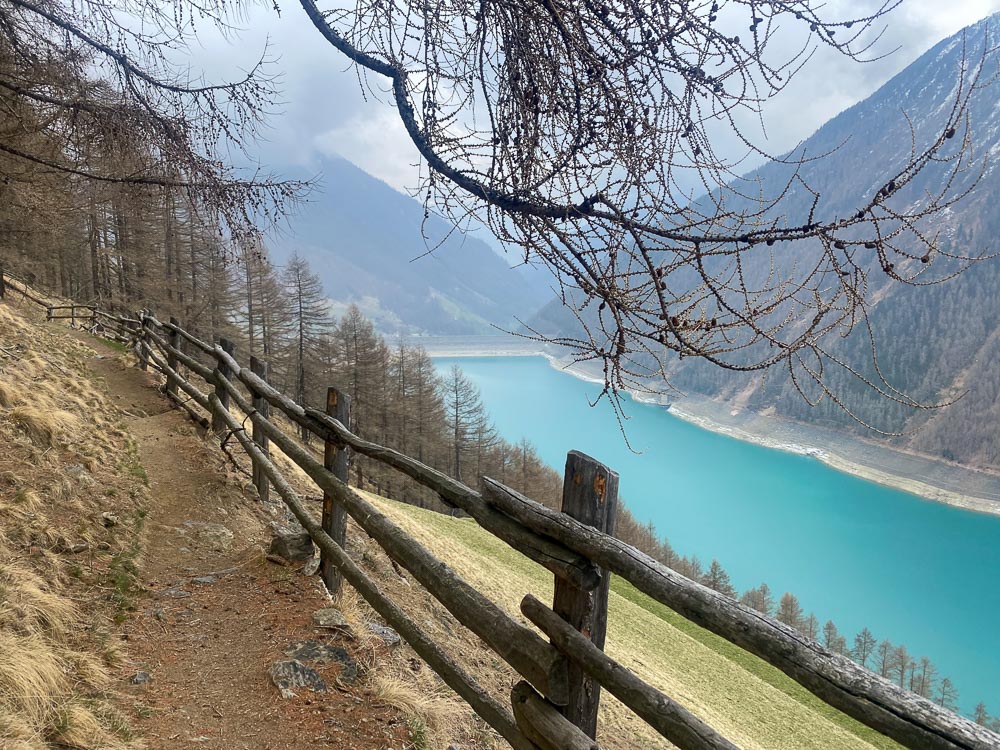 Attenzione: se soffrite di vertigini o avete bambini piccoli, questo tratto è un po’ esposto. In alternativa potete scendere dalla strada (al maso si arriva anche in macchina, direttamente) e arrivati allo specchio d’acqua costeggiare le sue rive.