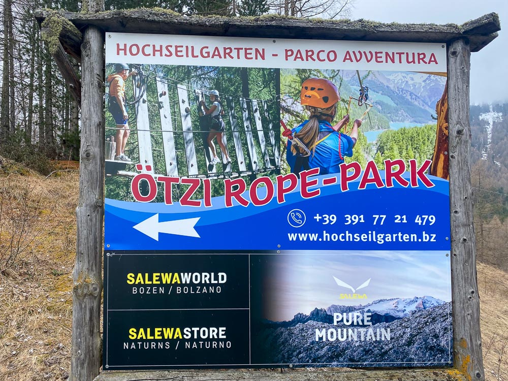 In un’ora arrivate quindi dall’altra parte e qui trovate il parco avventura Ötzi Rope Park, aperto indicativamente da maggio a novembre. 12 percorsi con diversi gradi di difficoltà e 160 stazioni collegate tra loro da ponti traballanti, reti, carrucole e passaggi più particolari come lo slittino, lo snowboard e la bicicletta. Linee per i più piccoli e altre fino ai 30 metri d’altezza. C’é inoltre un’altalena gigante con una traiettoria di 40 metri e caduta libera di 10. Per finire una zip-line sopra il lago, per una lunghezza complessiva di un chilometro. Tutte le informazioni QUI.