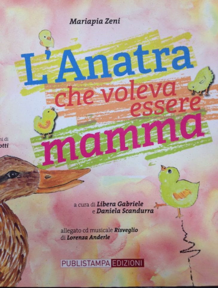 “L’anatra che voleva essere mamma” è la curiosa storia di Paolina, un’anatra, o meglio una papera, con un grande istinto materno, così grande da covare le uova anche se vuote, ma è anche la storia di Giovanni e Maddalena, che provano pena per lei e di nonna Rosetta che ha una soluzione per ogni cosa. È una storia così semplice da sembrare vera e , udite udite, lo è! In fondo al libro con grande sorpresa ci sono le foto della papera e dei suoi pulcini e la sensazione che il racconto si sia realizzato davvero é significativa e rende la morale più palpabile. Insomma, grazie alla nonna Rosina e ai suoi nipotini, Paolina realizza il sogno di diventare madre e non importa se i figli non sono esattamente i suoi, é l’amore per la nascita e la cura che qui conta. Che siano pulcini o paperortti poco importa, Paolina già li ama. Un tema tanto forte come attuale trattato, a mio avviso, con grande delicatezza dall’autrice e accompagnato dalle illustrazioni colorate e divertenti di Raffaella Rigotti. Qua è la le parole tradotte in 4 lingue straniere e non i soliti istituzionali tedesco, inglese, francese, ma albanese,cinese, arabo e rumeno, per spostare l’attenzione più sulla interculturalitá che sulla ormai nota necessità di affrontare le lingue straniere. Un volumetto pieno di sorprese e pieno d’amore, anche nell’idea di abbinare un cd musicale curato da Lorenza Anderle.