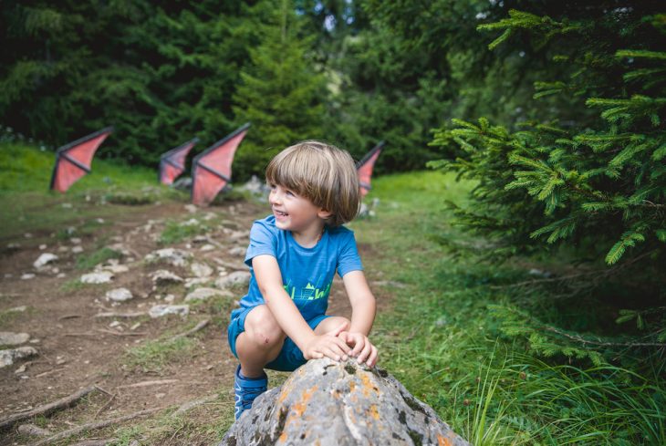 Appena arrivati, troverete dei simpatici draghetti a darvi il benvenuto. Dall’arrivo della funivia potrete scegliere tre diverse passeggiate: “la Foresta dei Draghi“, “il pastore distratto” e “il Geotrail Dos Capel” (raggiungibile prendendo la seggiovia che porta a Passo Feudo a 2200 metri di altitudine). Ma andiamo con ordine, ecco cosa vi attende in quota: