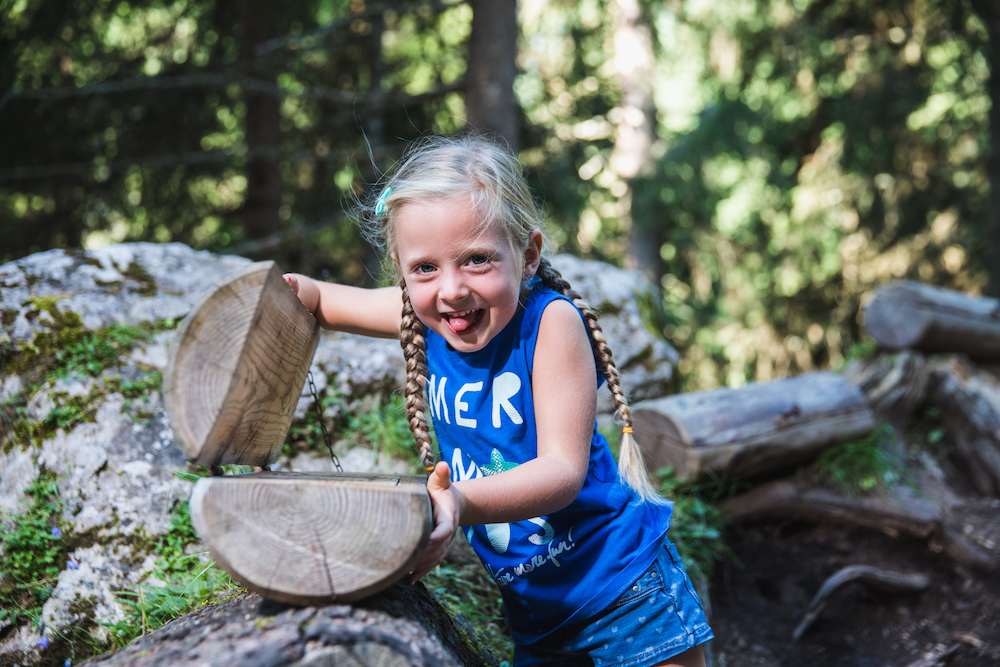 Così ci si può divertire imparando il ciclo dell’acqua, camminando a piedi nudi tra muschio e rametti e scoprire da vicino l’apiario. Anche in questo caso, il modo migliore per percorrere questo itinerario senza perdersi nulla è aiutandosi con un giocolibro (acquistabile al punto info di Gardonè).