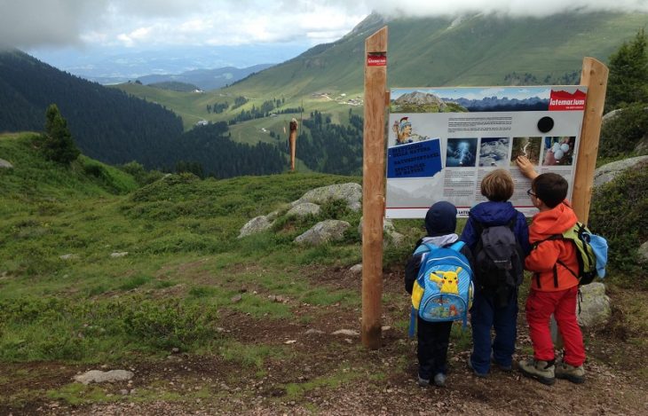 Latemar.meteo sull’Alpe di Pampeago, è un interessante percorso tematico, con partenza dall’arrivo della Seggiovia Agnello. Lungo questa semplice passeggiata i bambini possono scoprire tante cose interessanti sugli agenti atmosferici e i loro effetti sul meteo, grazie a pannelli illustrativi e interattivi. Il nostro preferito? Sicuramente il pannello che riproduce i suoni della natura! 🙂