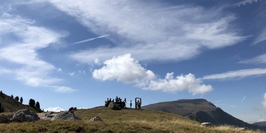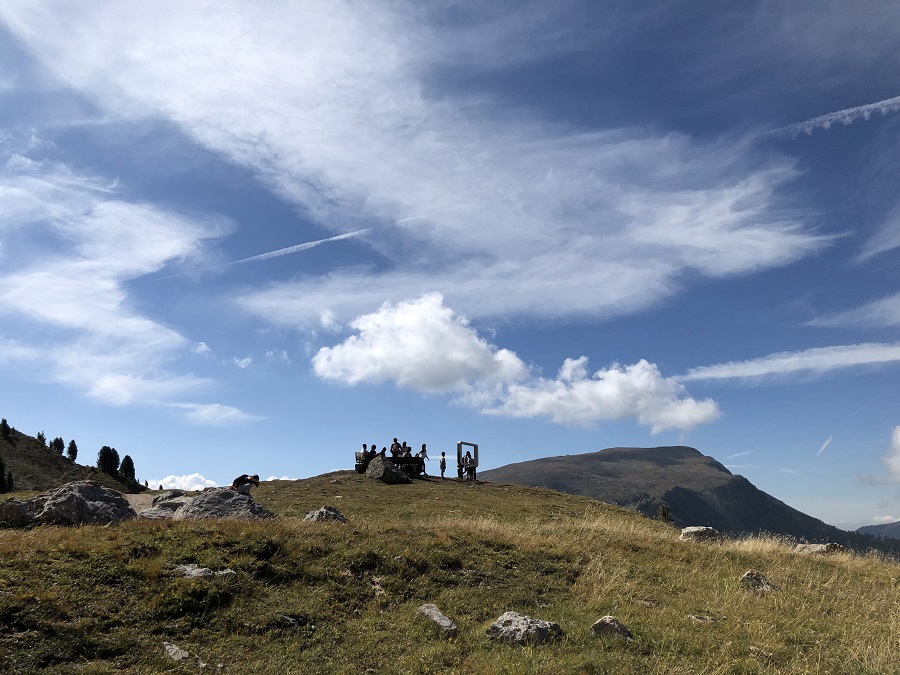 Abbandonata a malincuore la piattaforma abbiamo proseguito lungo il sentiero n°22. Bastano pochi minuti per arrivare al “cinema di montagna”: qui basterà sedersi ed ammirare lo spettacolo. Avete mai visto una proiezione così bella? Queste due installazioni si trovano lungo il percorso Latemar.Panorama (info QUI).