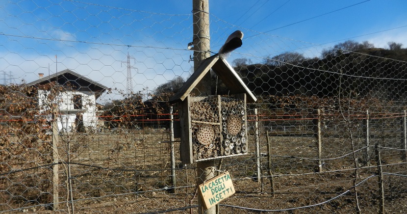 Noterete senza dubbio gli “hotel per gli insetti”, delle piccole casette, realizzate con materiali di recupero, posizionate attorno alle coltivazioni per ospitare gli insetti che aiutano a rendere migliori i frutti e a evitare l’utilizzo di sostanze chimiche.