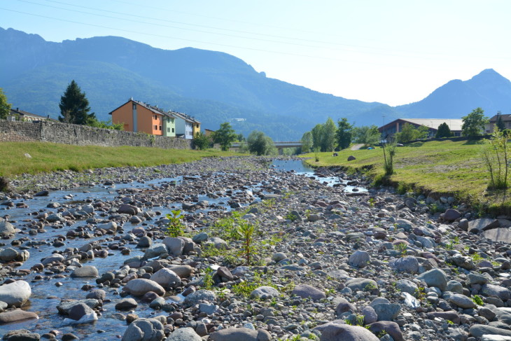 Per parcheggiare è comodo il Palaghiaccio, che si trova di fronte all’imbocco del parco. Si tratta di un altro bel lavoro di sistemazione degli argini di un torrente che, da un lato, è costeggiato dalla ciclabile della Valle dei Mocheni. Si entra in un prato curato, con panchine e tavoli, fontanella e soprattutto erba verde (avevamo detto infatti a suo tempo che i sassi di Lavis rendevano lo sfruttamento della spiaggia un pochino ostico, sebbene fosse comunque piacevole).