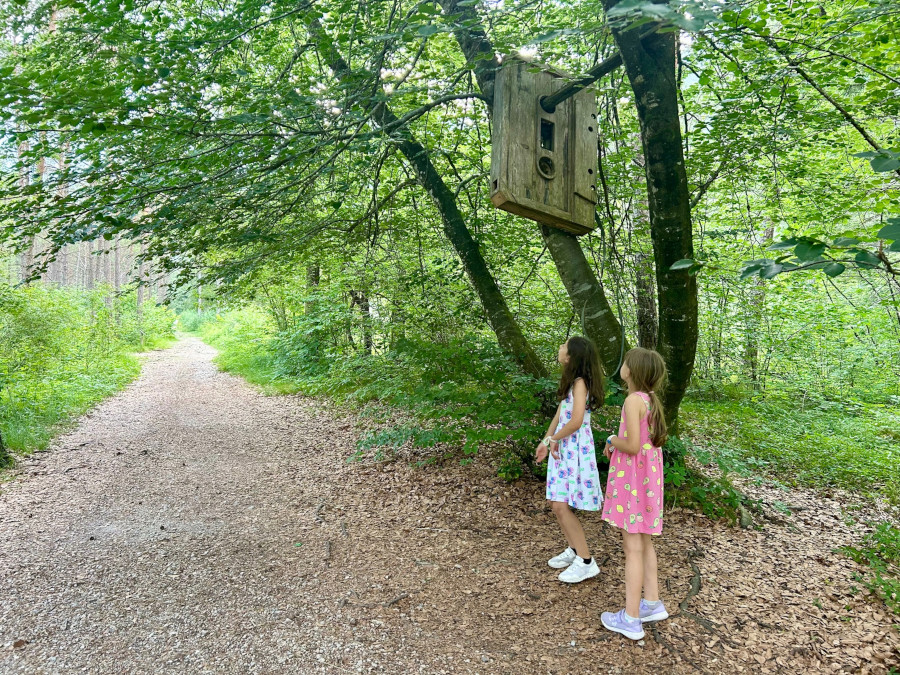 una chiocciola al limitare del bosco, una scopa gigante, un’enorme musicassetta in legno sospesa tra gli alberi, altalene, sempre amate dai bambini. Ma anche trincee, omini di pietra come una grande famiglia e tante altre (non ve le sveliamo tutte!)
