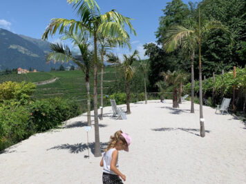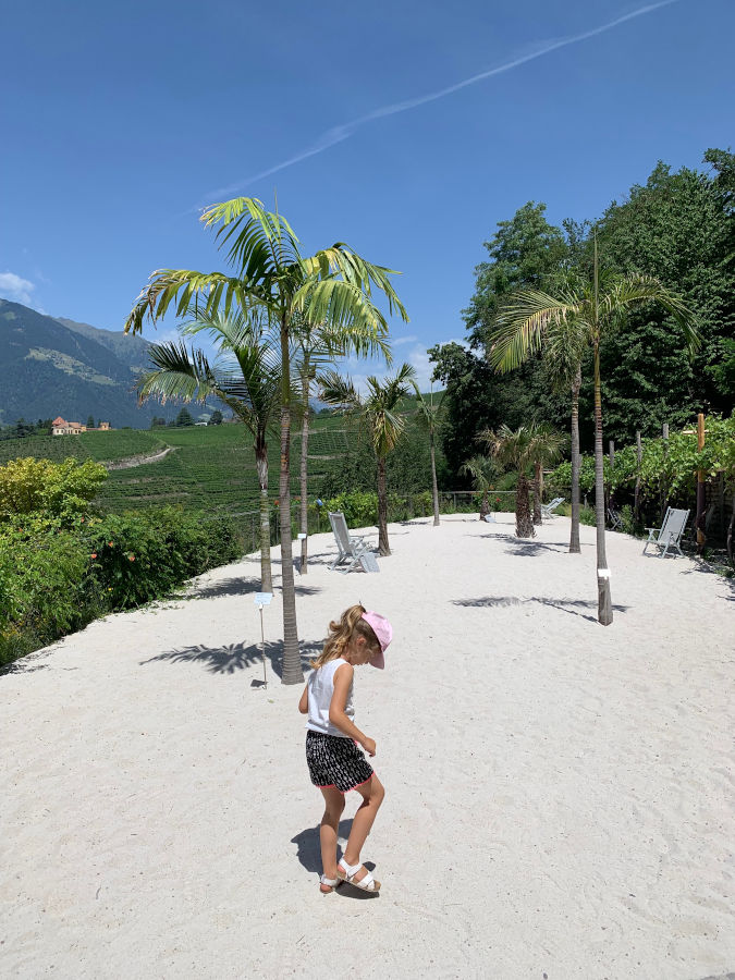 Nella parte più alta, la spiaggia delle palme, la voliera con i pappagalli, il binocolo con vista dell’architetto Matteo Thun ed il Giardino degli innamorati (bellissimo, per tutti).