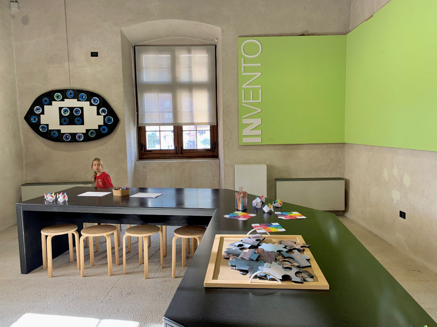 I nuovissimi spazi InVento sono stati ripensati e ridisegnati per accogliere e trasformare la visita al Museo in un’emozionante scoperta per tutta la famiglia. Ampi, colorati, pieni di stimoli per i più piccoli, cattureranno grandi e bambini. Al secondo piano troviamo uno spazio relax dove fermarsi a leggere o sfogliare un bel libro coi bambini, oppure a guardare una storia di sabbia (sand art) proiettata sul muro. Al primo piano invece una saletta dedicata al gioco. Qui vi potrete intrattenere con numerosi giochi da tavolo o fare una partita sul grandissimo “gioco dell’oca” a muro. Spazi per viaggiare con la fantasia e creare ricordi e legami mentre ci si riposa, si impara e ci si diverte!