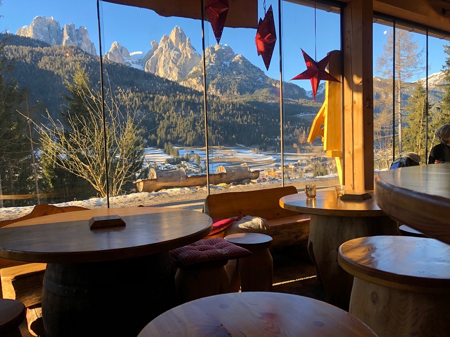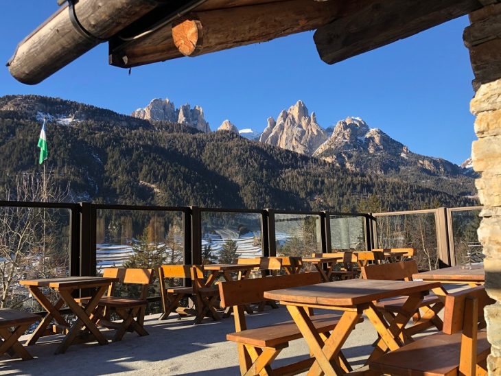 All’esterno, poi, una bella terrazza panoramica con vista su Vigo, Pozza e la stupenda Roda di Vael.