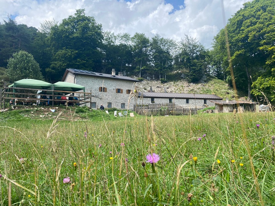 Molto bella la passeggiata, che si conclude con l’arrivo nei prati di quella che appunto una volta era un malga e da qualche anno è stato adibito a punto di ristoro. I gazebi con le tavole all’aperto, le sedute in legni, infiniti pascoli in cui giocare o riposare, la tranquillità che non ti aspetti.