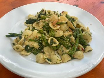 Come piatti nel menù troverete delle proposte semplici e genuine: noi abbiamo scelto un tagliere di affettati e formaggi, con un po’ prodotti direttamente nella loro azienda agricola e un po’ comprati da produttori vicini. Da non perdere lo spezzatino d’asino, del loro allevamento, e un piatto di orecchiette pugliesi. Cosa c’entrano, direte voi? Ebbene, Nicola è un pugliese doc che ogni tanto ama far arrivare dalla propria terra pane, mozzarelle, verdure e altri prodotti gustosi, quindi preparatevi a scegliere tra piatti del nord e del sud! Tra le proposte anche orzotto, canederli, tagliatelle al ragù e alla selvaggina, polenta con gulasch, oppure con formaggio fuso e funghi.