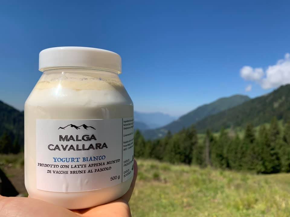 Dobbiamo spendere due parole per lo yogurt: viene prodotto con il latte appena munto della sera. Una volta aggiunti i batteri lattici viene messo il latte direttamente nel vasetto e lì si forma lo yogurt. Per questo si presenta come un unico blocco, diverso da quello che si è soliti consumare. Viene chiamato yogurt a coagulo compatto e presenta in superficie uno strato giallo di panna. Lo potete trovare tutti i giorni in gusti speciali: bianco, ai frutti di bosco, pera e cioccolato oppure mela, pinoli e cannella.