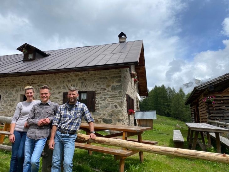 Questa malga, racconta il giovanissimo Manuel, che la gestisce, si trova a 2000 metri e siamo in Val di Rabbi. Si arriva partendo da Rabbi Fonti. Qui il formaggio è un’arte! Viene prodotto un nostrano a latte parzialmente scremato e il casolèt, un formaggio a latte intero che non ha bisogno di presentazione qui in valle. La peculiarità di questa malga è che usa un sistema turnario: gli allevatori portano le loro vacche e in base al latte che producono la malga conferisce il burro, la ricotta e il formaggio. Una sorta di sistema cooperativo.