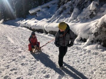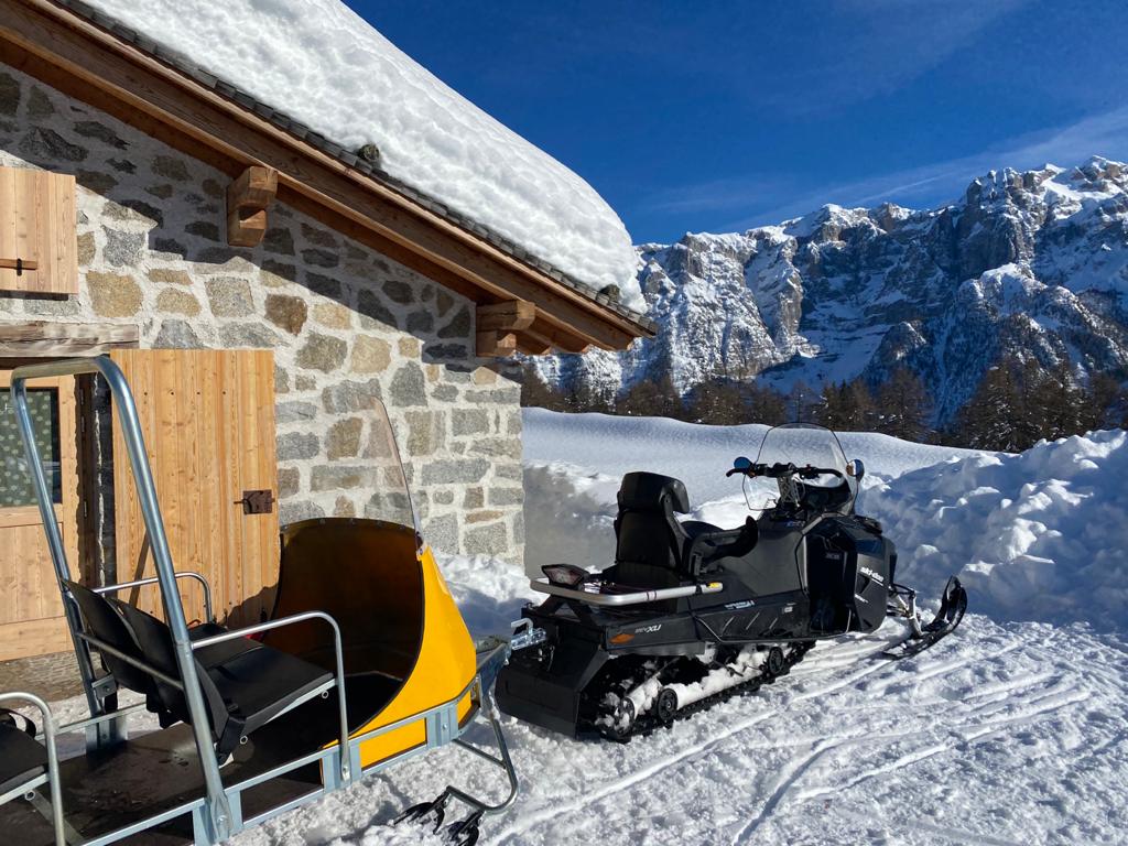 Chi ha bimbi piccoli, o non vuole camminare, può prenotare il servizio di trasporto con la motoslitta.