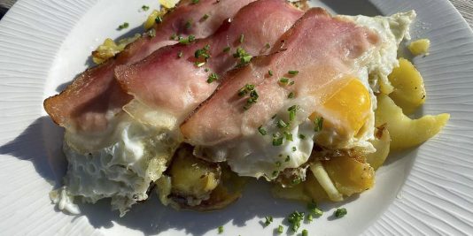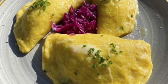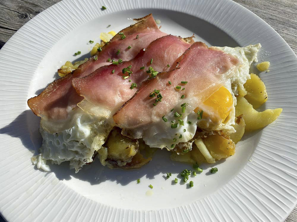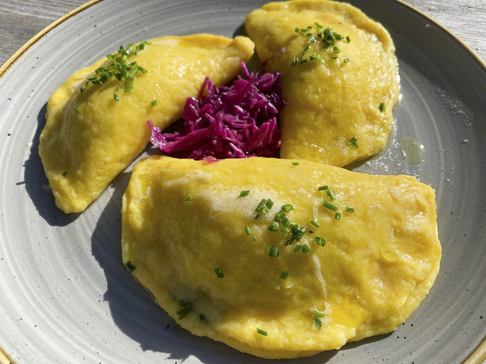 Qui si mangiano i piatti tipici della tradizione altoatesina, ma anche trentina (tipo la polenta con funghi o formaggio fuso). Per noi ravioli di patate ripieni di barbabietola e un classicone: uova, speck e patate. Ma anche canederli (con goulash o al burro fuso o anche in brodo), zuppa di cipolle o di goulash, spatzle con porri e speck.