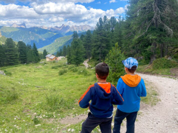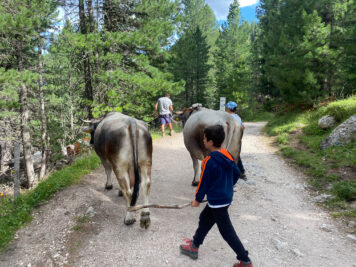 Noi siamo stati qui in occasione di un’alba in malga qualche giorno fa, pernottando al Rifugio Gardeccia. La sera precedente siamo andati assieme a Stefan e ai suoi figli (Liam, Elia ed Erik) e al pastore Mario a recuperare il bestiame al pascolo.
