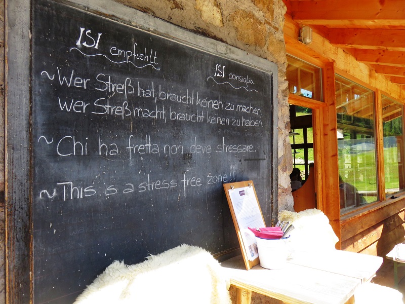 Come vi avvisa il cartello esterno, qui la fretta è bandita. Quindi mettetevi tranquilli e aspettate il vostro ordine: i grandi potranno rilassarsi nella bella zona “lounge” con sdraio in terrazzo mentre i piccoli si divertiranno a giocare nella sabbiera esterna o lungo il torrente che scorre poco distante. Noi siamo rimasti soddisfatti del pranzo a base di specialità tipiche.