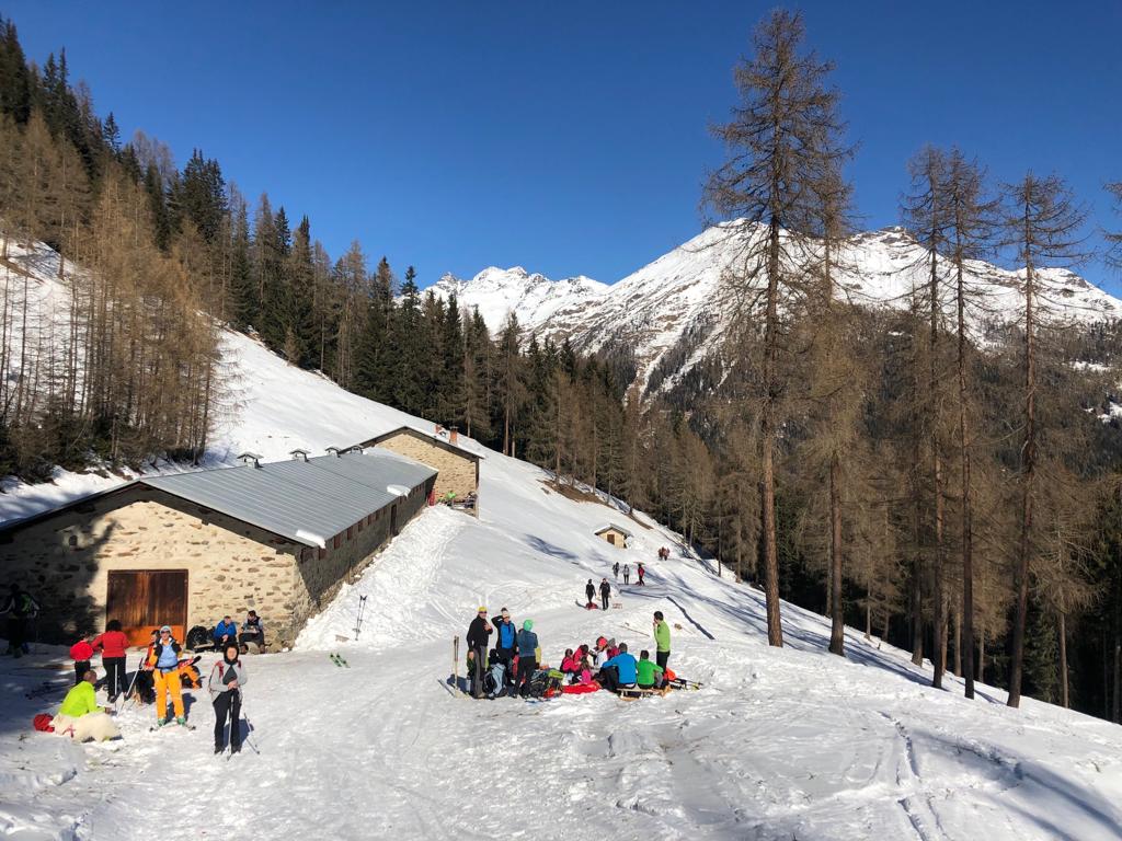 Ancora un ultimo sforzo (non fatevi spaventare dal cartello che indica ancora 45 minuti, non è veritiero!) e in breve sarete arrivati a questa bella struttura, che d’estate ospita gli animali in alpeggio, mentre in inverno è meta di escursionisti, ciaspolatori, sci alpinisti ed appassionati di slittino.