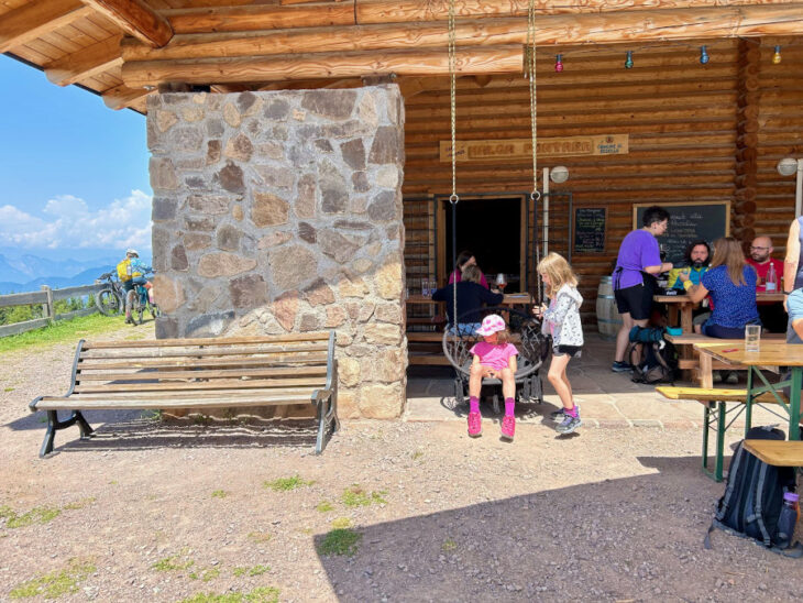 Superato il primo tratto nel bosco, non fatevi ingannare dal cartello che trovate in cima alla salita: la freccia sembra indicare la strada che scende in realtà proseguite dritti lungo il sentiero che sale. Poco più avanti troverete la conferma che siete nel posto giusto, in nemmeno 10 minuti sarete a destinazione. Appena usciti dal bosco ecco che si intravvede il tetto di malga Pontara.