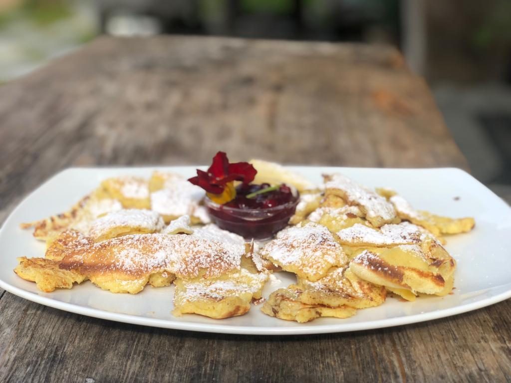 La passeggiata prosegue per questa valle selvaggia e poco conosciuta che regala scorci di altri tempi, tra masi antichi e personaggi della saggezza popolare. Ecco quindi all’improvviso la malga, a quota 1470 metri, con tavoli e panche al sole, un giardino curato e giochi per bambini tra cui la sabbiera. Diversi i piatti della tradizione altoatesina nel menù, tra cui affettati e formaggi di propria produzione; wurstel e patate; uova, speck e patate e l’immancabile kaiserschmarren con la marmellata di ribes e lo zucchero a velo. Prezzi contenuti e qualità garantita.