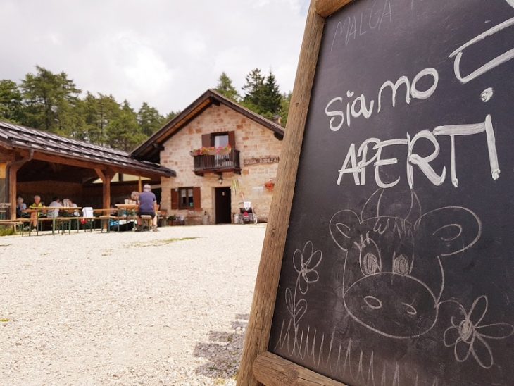 Malga Rodeza è aperta sia d’estate (da metà giugno a metà settembre) che nei fine settimana d’inverno (qui il nostro racconto con la neve) ed è facilmente raggiungibile. Potete posteggiare l’auto nei pressi del Rifugio Predaia Ai Todes-ci. Da qui ci si incammina sulla strada forestale 503 e in circa 50 minuti di cammino arriverete ai pascoli verdi della malga, posta a quota 1580 metri! Il percorso è fattibile anche in bici o in passeggino da trekking sebbene, fate attenzione, si tratta pur sempre di una forestale su fondo sterrato (dislivello: circa 200 metri)!