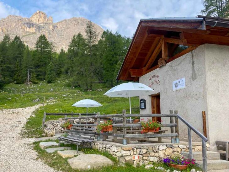 Malga Vael è un delizioso posto di ristoro ai piedi della famosa Roda di Vael, sul Catinaccio. Ha riaperto quest’anno grazie al giovane Micel Lastei ed alla sua famiglia. Gestione cordiale, piatti della tradizione ed atmosfera rurale le caratteristiche di questo luogo che si raggiunge facilmente con un’escursione di circa un’ora e mezza (e 300 metri di dislivello) dal Ciampedie.