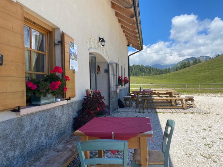 Qui anche i dolci, cucinati con i prodotti della malga, son deliziosi: ad esempio ricotta con zucchero e grappa, la crostata con ricotta e amaretti, il Cuor di susine (crostata con confettura di susine), la Morbidona la cioccolato (torta sofficissima con ricotta nell’impasto e tante gocce di cioccolato), Voglia di dolce (ricotta con il miele e le noci), yogurt tutti gusti + 1 (con quello che c’è in casa: confettura, noci, miele, frutti di bosco caldi ecc..) e a volte anche la treccia mòchena. L’esperienza di mangiare in malga è unica: aria fresca, panorama spettacolare, prodotti genuini e soprattutto buoni!