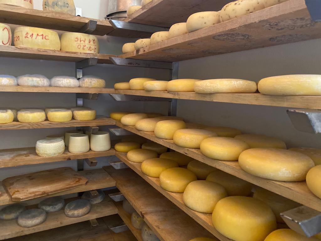 Nel volto – la cantina, per intenderci – è stata creata la sala di stagionatura. Qui i formaggi vengono immersi in apposite vasche con la salamoia per un tempo adeguato a seconda del tipo di formaggio: tre giorni per quelli più grandi, due per i piccoli e qualche ora per le caciotte. Una volta tolti dal sale vengono riposti sulle assi, per poi venire girati ogni giorno e al bisogno anche puliti e spazzolati, per evitare che si formino muffe. Una vera routine di bellezza e salute della forma di formaggio, che ne beneficia in bontà e qualità.